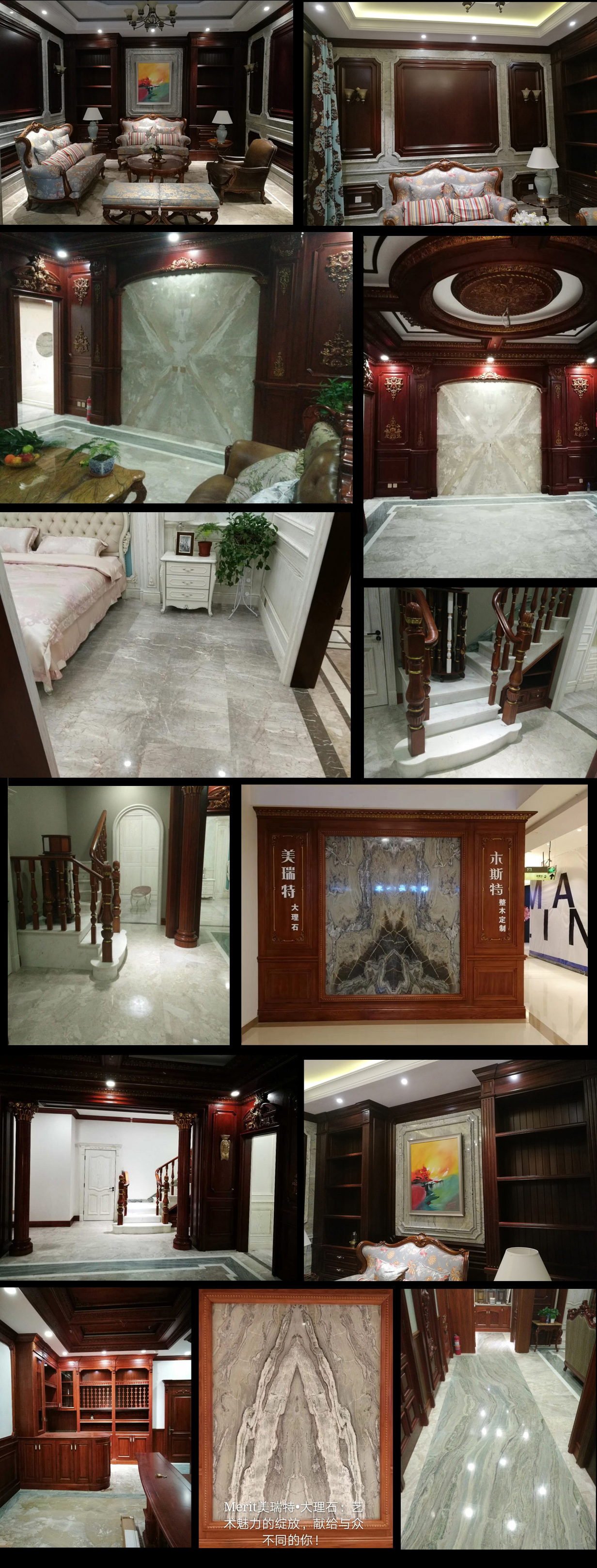 同时,美瑞特天然大理石产品品种多样,纹理独特、多变,可以跟任何家装品类(实木整装、橱柜整装、卫浴、门窗等)相结合,风格的多样化亦可以演变出万种高端家装风情,这次美瑞特的完美升级转型,引领了家居零售新模式,高端品牌强强结合,可以让你真正体会到1+1>2的感受!