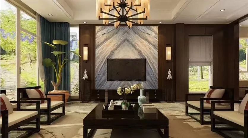 大理石与实木的结合在空间中的使用,不仅反映出现代人追求简单生活的居住要求,更迎和了中式家居追求内敛、质朴的设计风格,使中式风格更加实用、更富现代感。