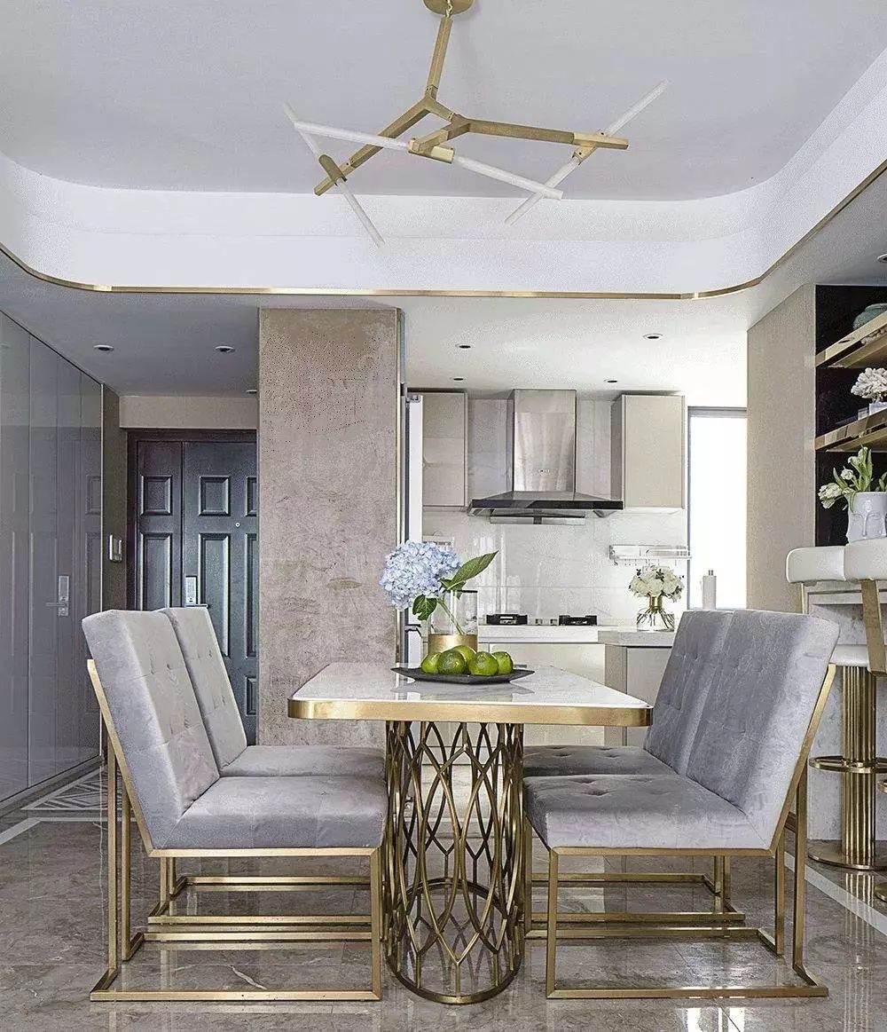 现在最火的轻奢元素,莫过于大理石和黄铜这对热门cp了。大理石的温润内敛搭配黄铜的高级质感,在视觉上可以形成一股极强的艺术张力,轻松打造一个时尚精致的现代家居。