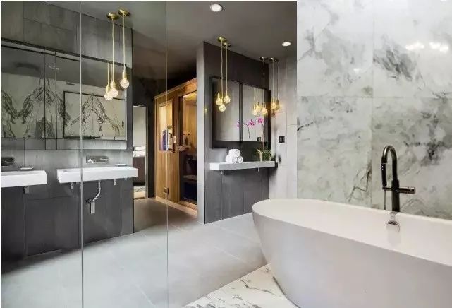 从古时候开始,人们就已经利用大理石来建造浴室。每一块大理石都是大自然独一无二的艺术品。不同类型和色调的大理石搭配出浴室精致而沉稳的奢华气质。